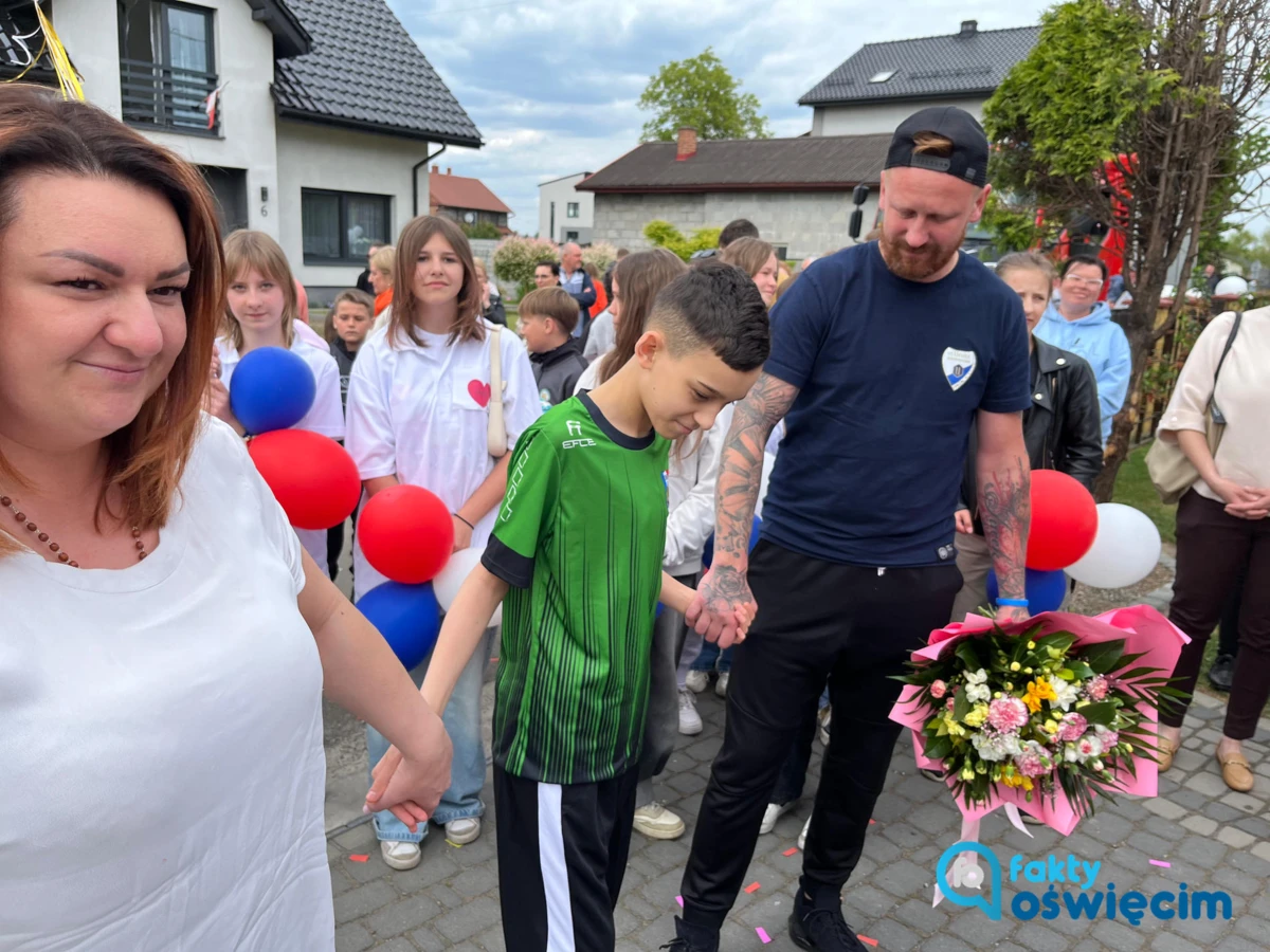 Były brawa, okrzyki radości, brama z napisem „Jacuś witamy w domu”, konfetti, tort w kształcie piłki nożnej, jak na sportowca przystało, a także lawina najlepszych życzeń i moc prezentów.