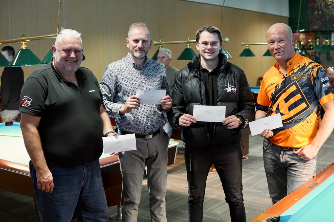 Turniej wystartował tuż po tym symbolicznym akcencie. Zawodnicy walczyli w ośmiu grupach, po sześciu graczy w każdej. Awans do fazy pucharowej zapewniała pierwsza trójka, więc każde trafienie mogło przesądzić o dalszej grze. W decydującej części turnieju uczestnicy walczyli o nagrody pieniężne i vouchery fundowane przez właścicieli.