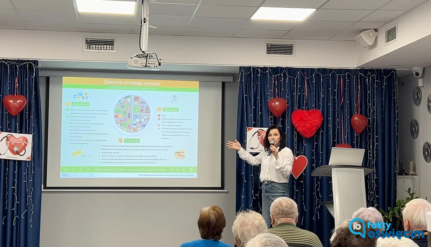 Po części edukacyjnej seniorzy mogli skorzystać z pomiaru ciśnienia, poziomu cukru oraz badania EKG. Każdy otrzymał broszurę dotyczącą zdrowego odżywiania oraz książeczkę do monitorowania ciśnienia i cukru.