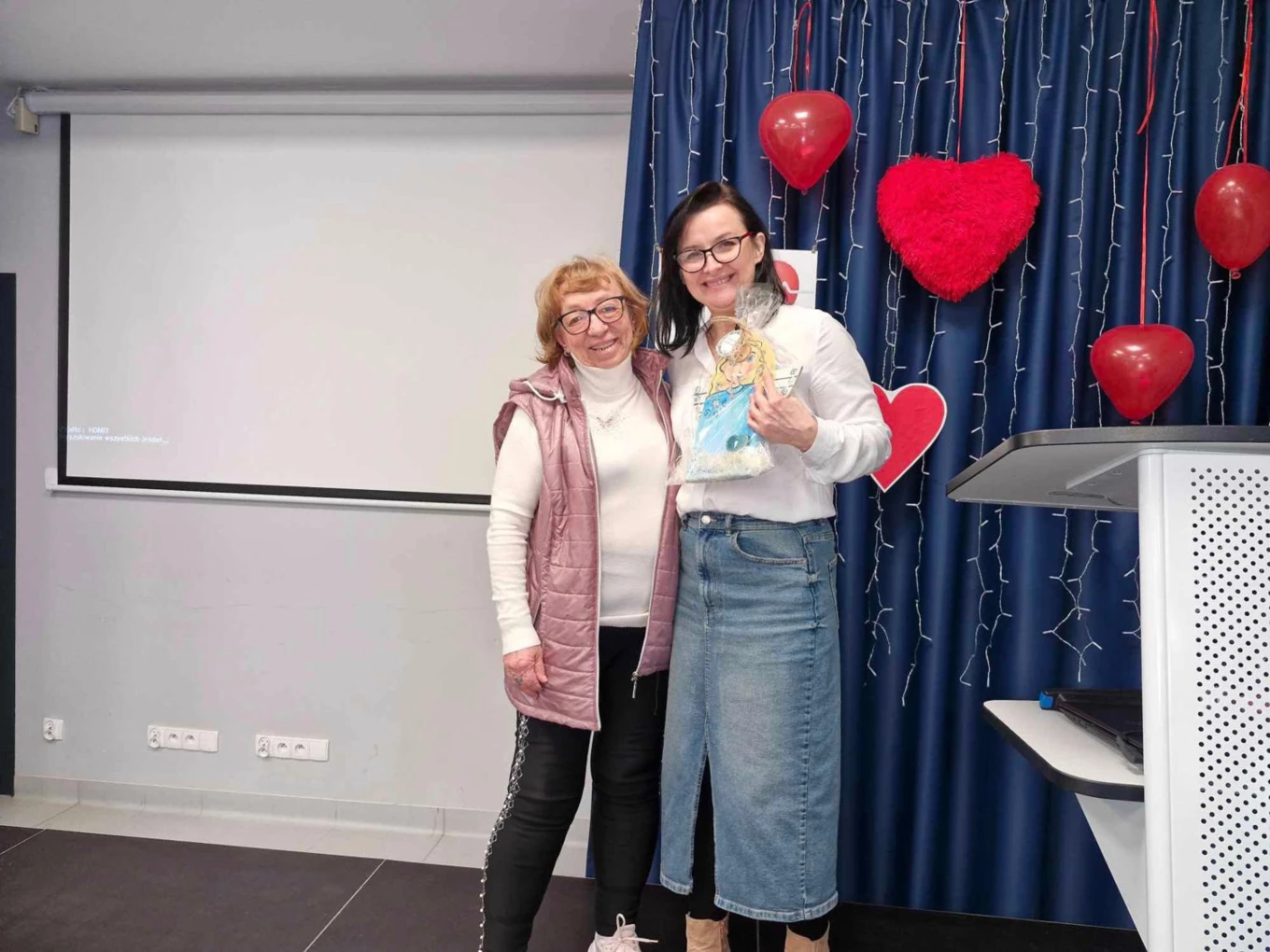 Nie zabrakło także walentynkowych akcentów. Uczestnicy otrzymali gadżety w kształcie serca, które pomagają ćwiczyć mięśnie dłoni.