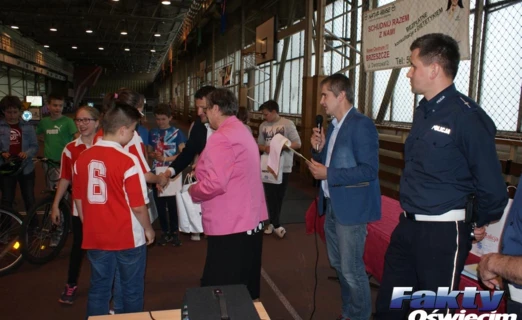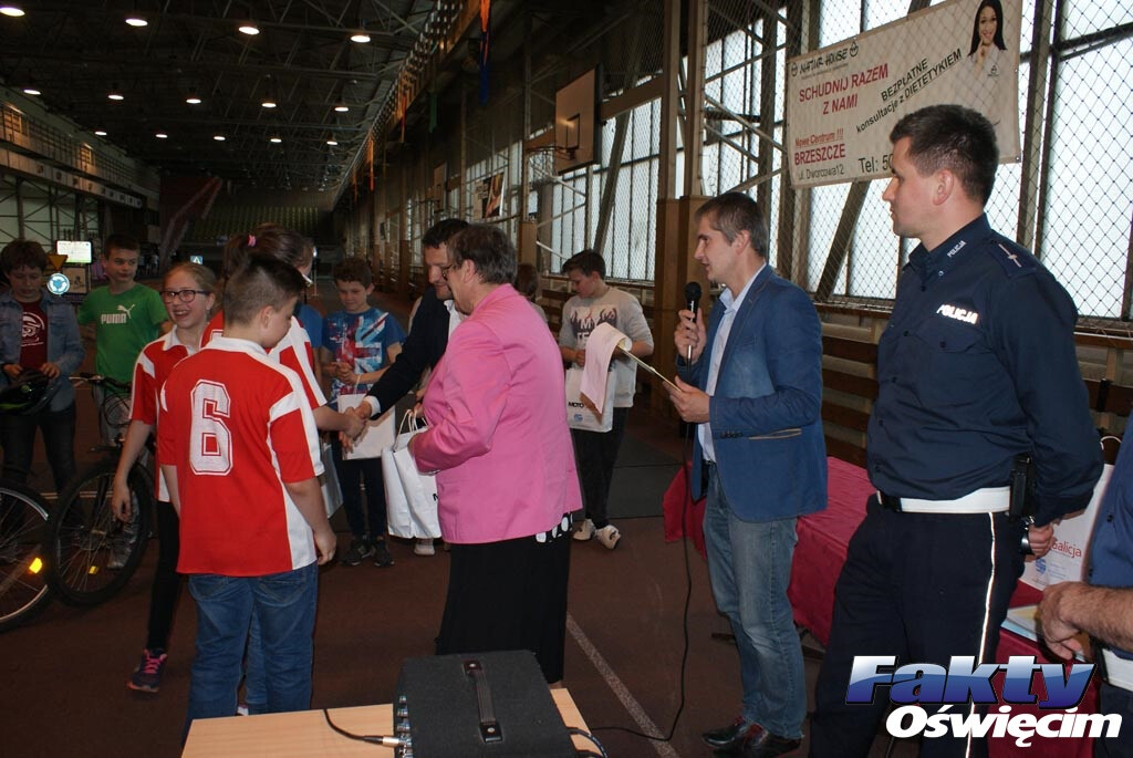 W miasteczku zorganizowano też turniej „Bezpieczny rowerzysta”, w którym wzięły udział trzyosobowe drużyny, reprezentujące szkoły podstawowe z gminy Brzeszcze. Najpierw była część teoretyczna. Później przejazdowi młodych rowerzystów i umiejętności zastosowania przepisów ruchu drogowego w praktyce bacznie przyglądali się młodsi aspiranci Grzegorz Czopek i Łukasz Madeja z oświęcimskiej drogówki.