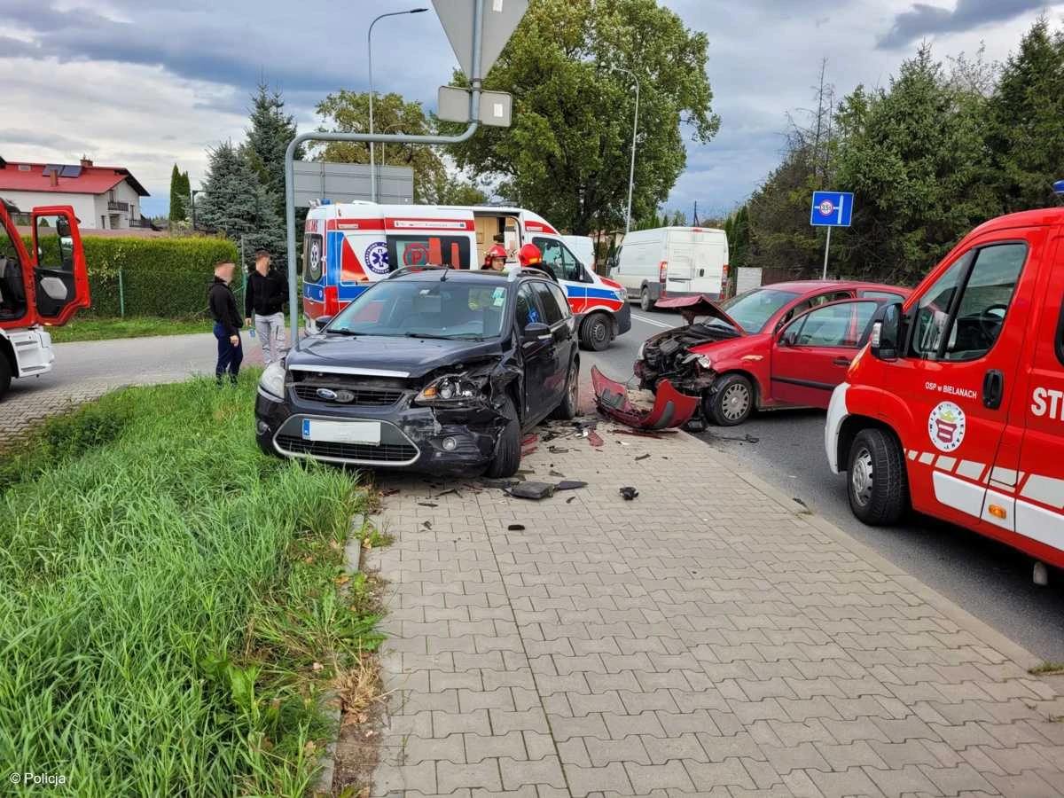 We wtorek rano na drodze wojewódzkiej nr 948 w Bielanach czołowo zderzyły się dwa samochody. Policja apeluje o ostrożność na drogach.