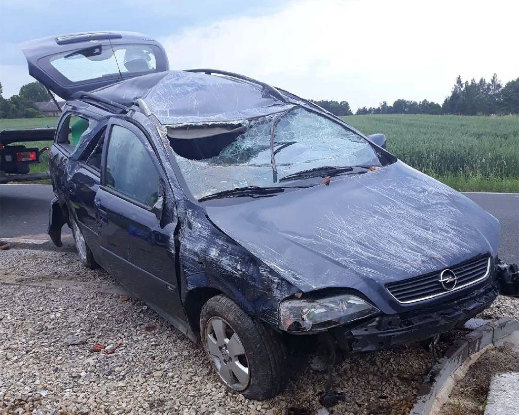 Młody mieszkaniec powiatu wodzisławskiego wiózł rodzinę oplem astrą, jadąc przez Głębowice. Na ulicy Wadowickiej stracił panowanie nad pojazdem, który wjechał z jezdni do rowu i uderzył w betonowy podjazd. Siłą uderzenia opel dachował.