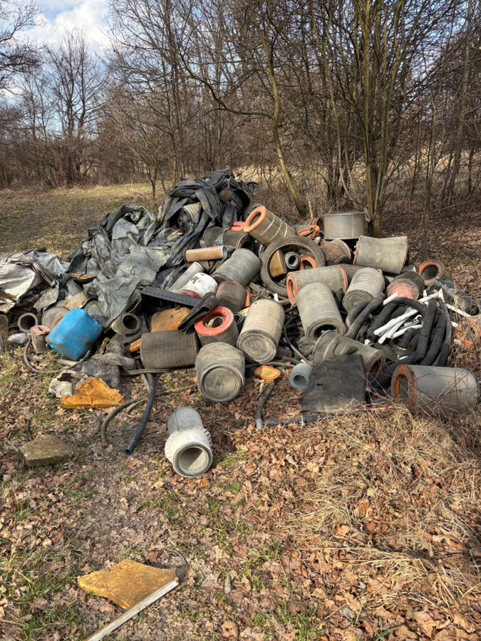 Można domniemywać, że odpady pochodzą z jakiegoś warsztatu samochodowego. Składają się na nie m.in. filtry powietrza, gumowe węże, plastikowe zbiorniki i części samochodów, a także metalowe puszki.