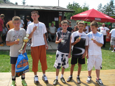 Po turnieju przeprowadzono otwarty konkurs rzutów. Wygrał go Eryk Żebrak. Najmłodszym uczestnikiem konkursu był Paweł Chowaniec (obaj miłośnicy piłki na zdjęciu poniżej). Paweł, choć nagrodzony, wyraźnie zazdrościł pięknego pucharu Erykowi. Najlepszy strzelec karnych podarował swoją nagrodę młodszemu koledze.