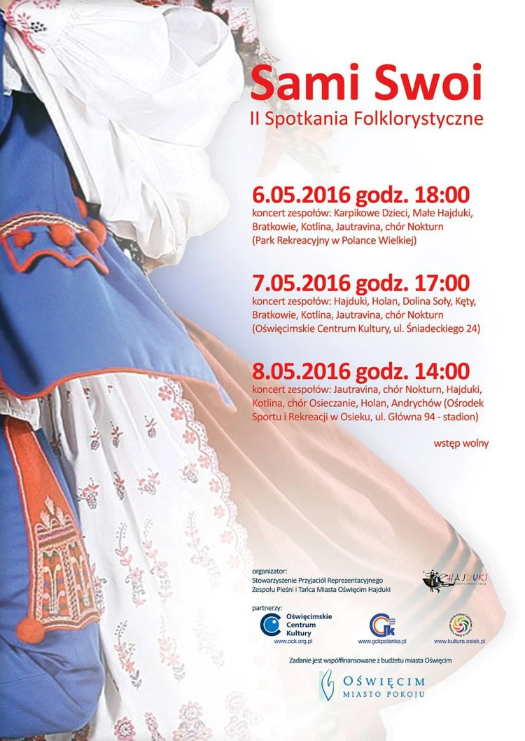 W weekend od szóstego do ósmego maja w Polance Wielkiej, Oświęcimiu i Osieku odbędą się II Spotkania Folklorystyczne "Sami Swoi".
