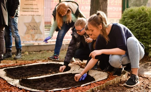 Młodzi ludzie posadzili krokusy najpierw w miejscu dawnej wielkiej synagogi. Po rozkwitnięciu przybiorą kształt menory. Te, które młodzi ludzie zasadzili przy MDSM będą przypominać harfę.