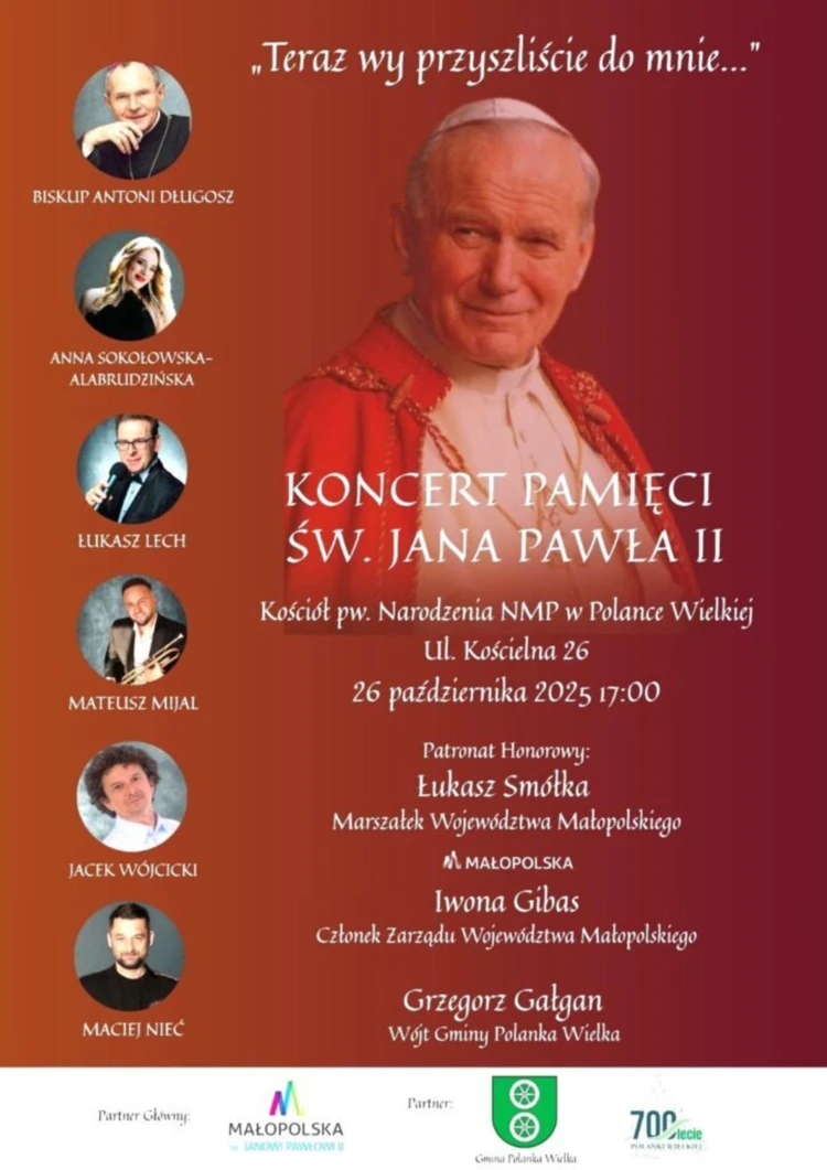 „Serdecznie zapraszamy wszystkich, którym bliska jest pamięć Ojca Świętego, do Polanki Wielkiej. Niech będzie to czas refleksji, wdzięczności i wspólnego śpiewu” - zachęca do udziału Grzegorz gałgan, wójt Polanki Wielkiej.