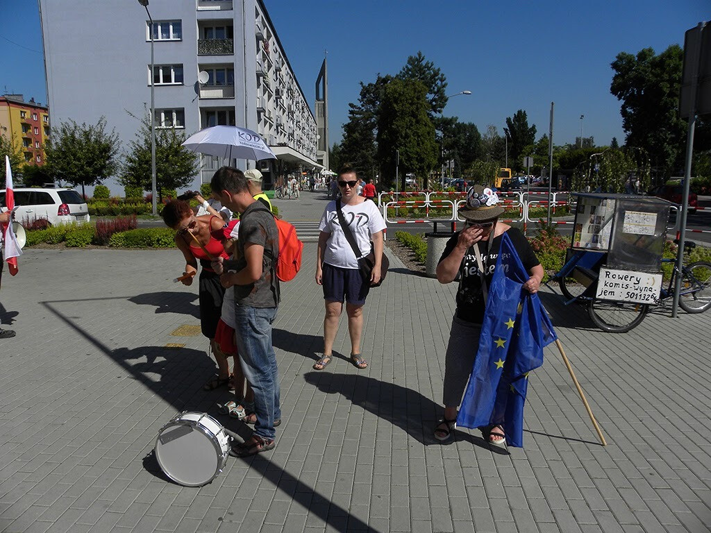 Kodowcy zachęcali mieszkańców, by przyłączyli się nie tylko do kolorowego peletonu, ale także do KOD. Happening zorganizowali, by popularyzować idee komitetu wśród społeczeństwa.