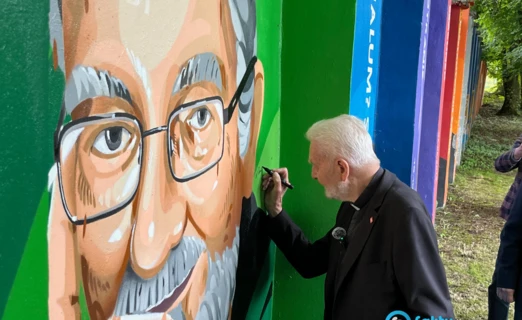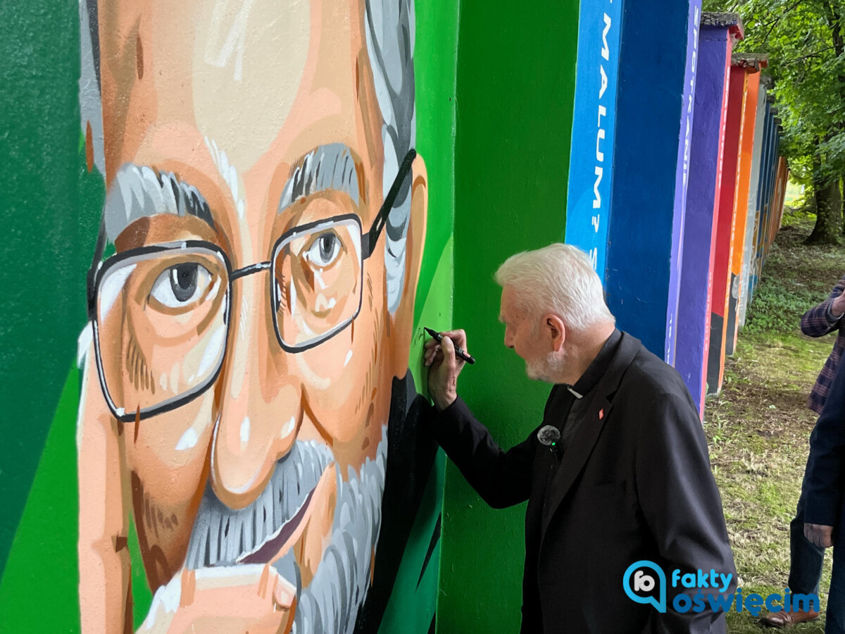 W ogrodzie Międzynarodowego Domu Spotkań Młodzieży (MDSM) w Oświęcimiu ksiądz Adam Boniecki odsłonił mural „Nadzieja".