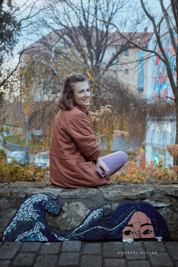 Na Placu Skarbka, na murku tuż obok Café Bergson, odnajdziemy mozaikę mówiącą o sile i zmienności. Stworzyły ją Aneta Borowska, Bożena Płoszczyca i Izabela Grolik. To dzieło, które zatrzymuje wzrok, jakby układało w kolorach opowieść o kobiecej odporności, o ciągłym stawaniu się i odwadze transformacji.