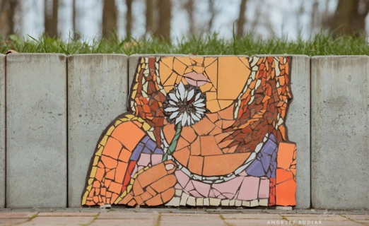 W Parku Pokoju, na skromnym murku, rozkwita mozaika z dmuchawcem. Jej autorki – Alicja Sławęcka, Anna Żubrowska-Tomala i Oksana Naumczuk, stworzyły obraz lekkości i wolności. Dmuchawiec, unoszący się jak oddech, symbolizuje beztroską wszechmoc - to delikatna, ale silna przypominajka o możliwościach, które nosimy w sobie.