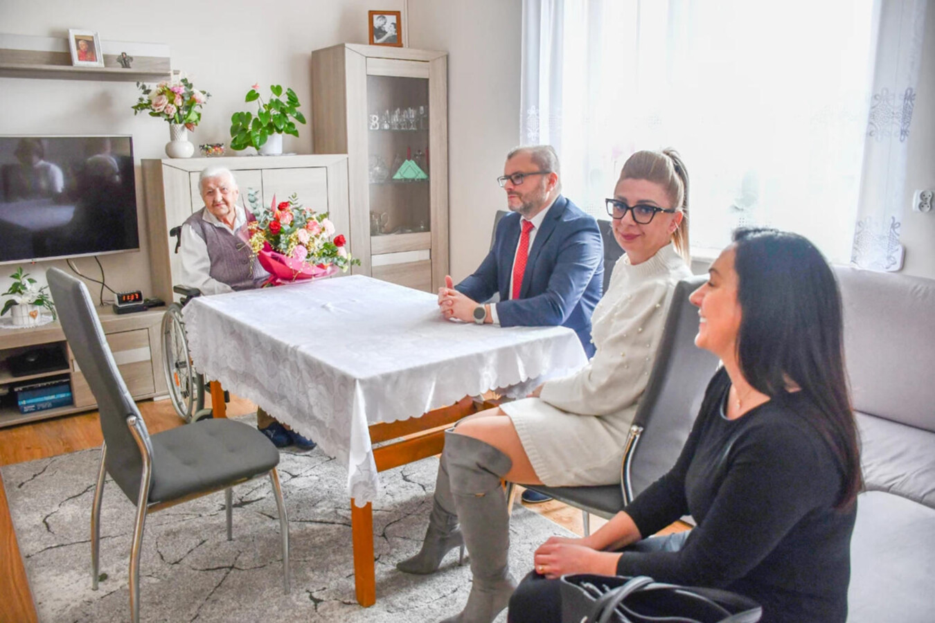 Z tej okazji jubilatkę odwiedzili przedstawiciele władz samorządowych: burmistrz Gminy Kęty Marcin Śliwa, sekretarz Ewelina Jura-Bączek oraz zastępczyni kierownika Urzędu Stanu Cywilnego Anna Krawczyk-Kryczka. Złożyli pani Stefanii serdeczne gratulacje, kwiaty i życzenia zdrowia na kolejne lata.
