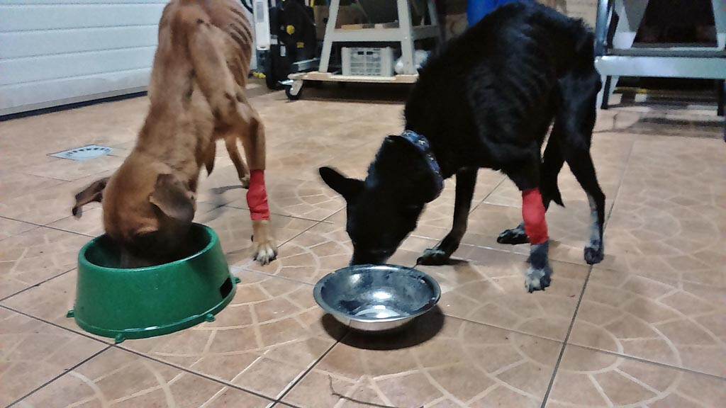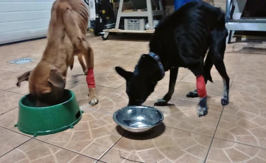 Dwa pieski - dwu i czteroletni - oraz dwuletni kocurek i około roczna kotka sa w tragicznym stanie. Dorosły kot, waży... 1,35 kg. Psy ledwo trzymają się na łapach. Zwierzęta są bardzo słabe, wycieńczone i potwornie głodne.