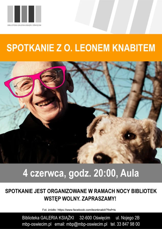 Zapraszamy w najbliższą sobotę 4 czerwca o godzinie 20 do oświęcimskiej Biblioteki na spotkanie z O. Leonem Knabitem, Benedyktynem z klasztoru w Tyńcu.