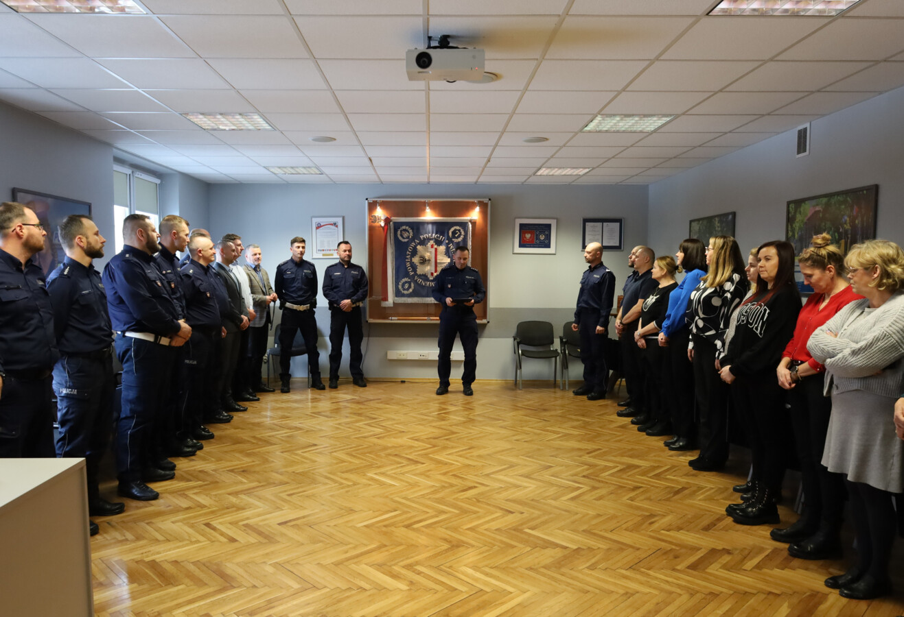 Nadkomisarz Jerzy Wilk, pełniący obowiązki pierwszego zastępcy komendanta powiatowego policji w Oświęcimiu, zwrócił się do pracowników cywilnych z wyrazami uznania za ich zaangażowanie i rzetelne wykonywanie obowiązków.