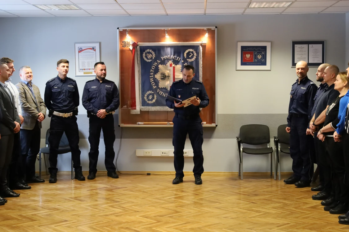 Podkreślił, że dzięki ich pracy policjanci mogą sprawniej realizować zadania na rzecz bezpieczeństwa mieszkańców powiatu. Komendant złożył również życzenia satysfakcji z pracy, pomyślności w życiu osobistym i dalszych sukcesów zawodowych.