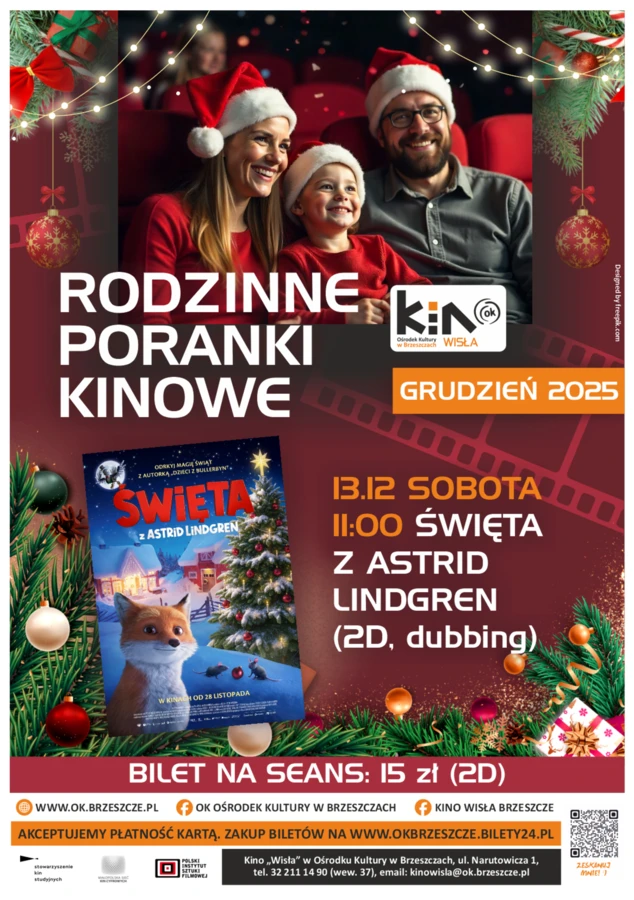 Ośrodek Kultury w Brzeszczach zaprasza na Rodzinny Poranek Kinowy w sobotę 13 grudnia, godz. 11. Na ekranie kina Wisła widzowie zobaczą film Święta z Astrid Lindgren w wersji 2D z polskim dubbingiem.