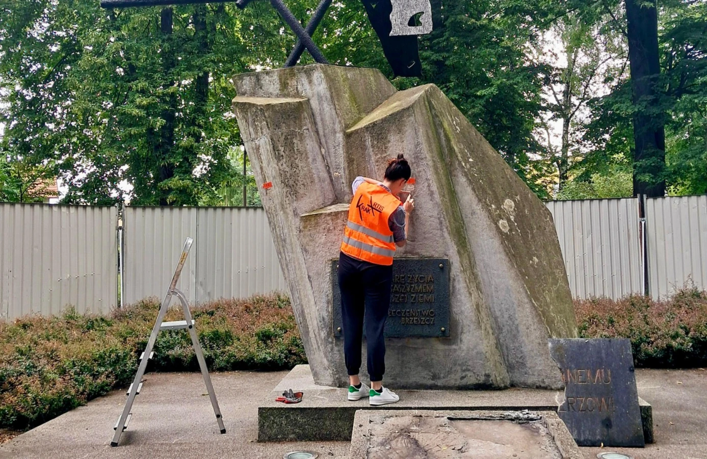 W brzeszczańskim parku miejskim trwają prace konserwatorskie przy pomniku „Ku czci ofiar faszyzmu”.