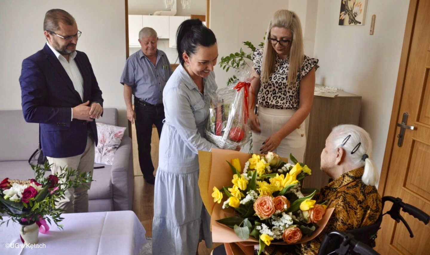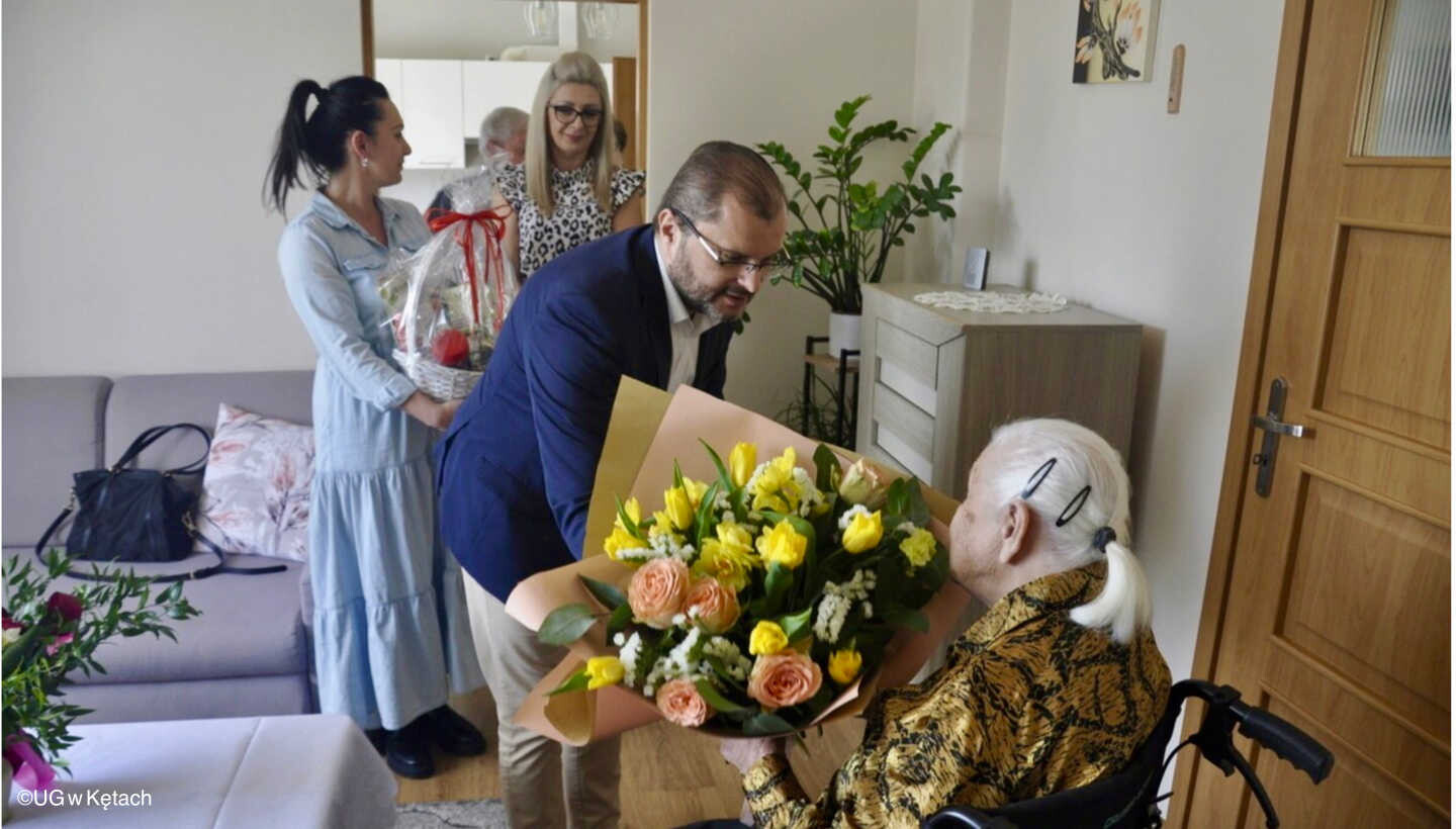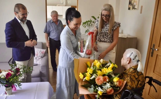 Wyjątkowy dzień pełen radości i uznania dla jej długiej i barwnej historii życia, został odpowiednio uhonorowany przez lokalne władze. Marcin Śliwa, burmistrz gminy Kęt, wraz z Eweliną Jura-Bączek, Sekretarz Gminy, oraz Anną Krawczyk-Kryczką, zastępczynią kierownika Urzędu Stanu Cywilnego w Kętach, złożyli jubilatce najlepsze życzenia.