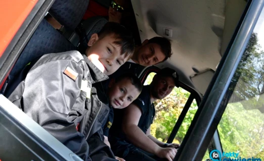 3,5-letni Maks Jędrzejczyk, najmłodszy strażak OSP w Grojcu. Fot. eFO
