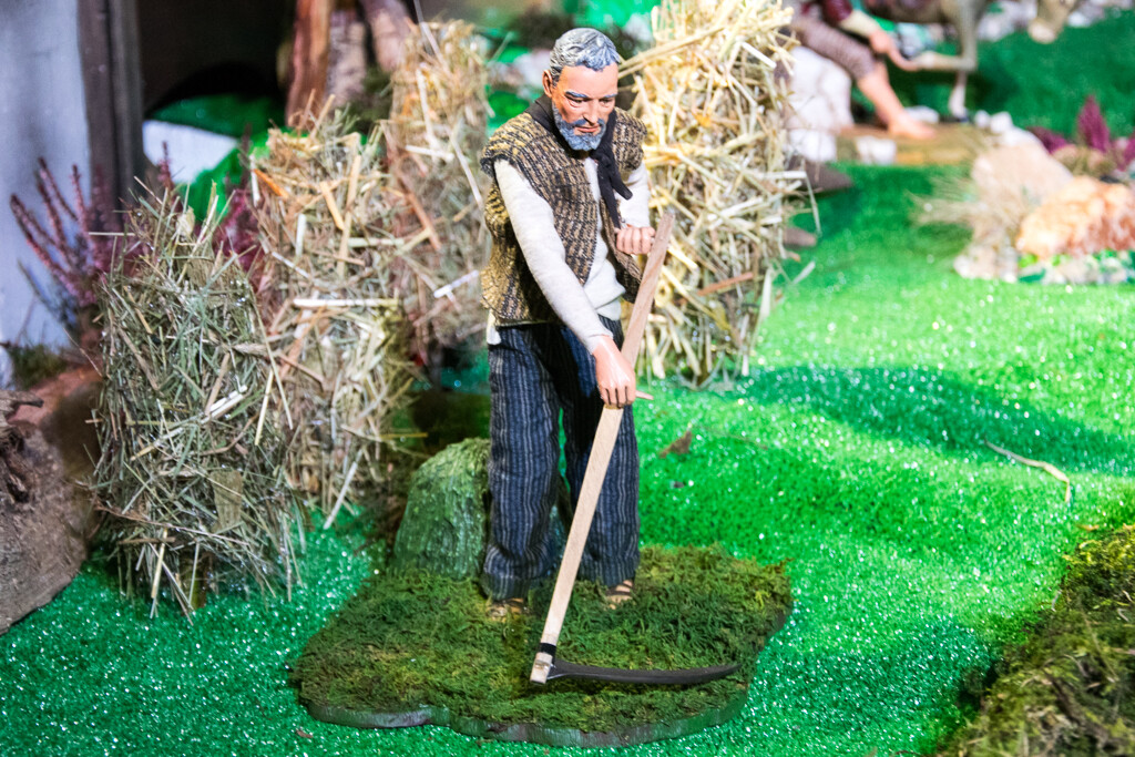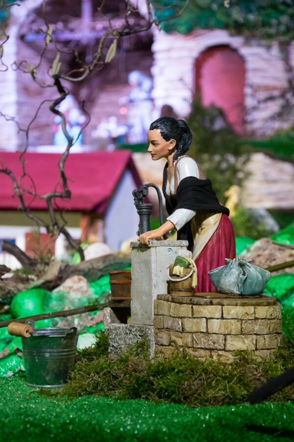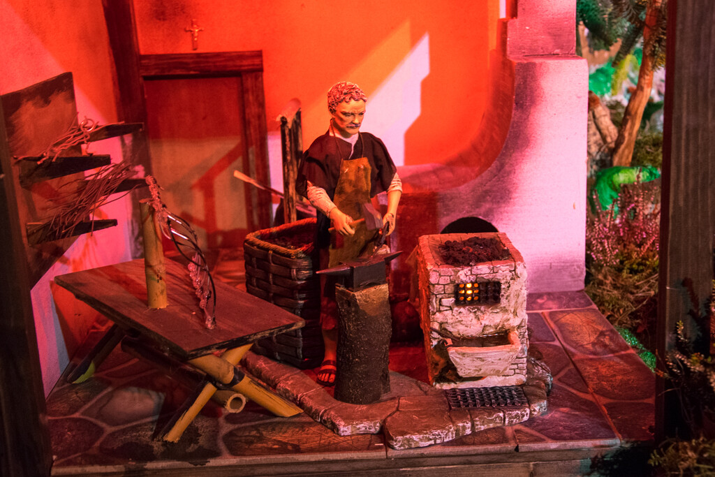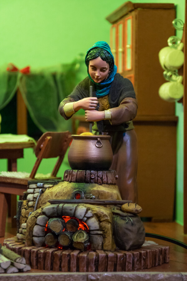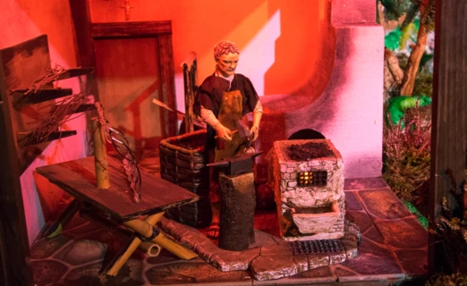 - Pomimo, że słońce już dawno zaszło, w tym miasteczku praca nie ustaje. Kowal z równomiernym stukotem wykuwa kolejny przedmiot z metalu, kobieta nabiera wody ze studni, zwierzęta piją wodę z jeziora, chłop kosi trawę, pasterz strzyże owcę, gospodyni przygotowuje potrawę, mieszając ją w garnku, szewc reperuje buty - mówi o szopce Kamil Szyjka z chełmeckiego magistratu.