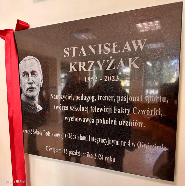 W Szkole Podstawowej nr 4 w Oświęcimiu uczczono pamięć Stanisława Krzyżaka, nauczyciela, który przez pół wieku poświęcał się pracy z dziećmi.  Uczniowie wraz z nauczycielami i gośćmi odsłonili tablicę pamiątkową, przypominającą jego zasługi i ogromne zaangażowanie w życie szkoły oraz lokalnej społeczności. Krzyżak, urodzony 4 lipca 1952 roku w Limanowej, rozpoczął swoją karierę w Czwórce 1 września 1973 roku jako nauczyciel wychowania fizycznego i pracował tam aż do emerytury, a nawet po niej.