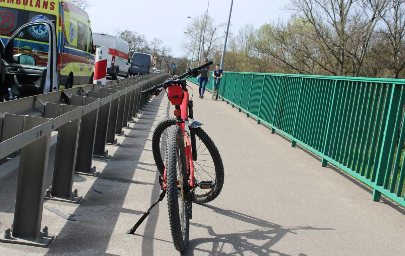Dwaj rowerzyści zderzyli się podczas wymijana na ścieżce rowerowej na moście Jagiellońskim w Oświęcimiu. Sprawca wziął nogi za pas.